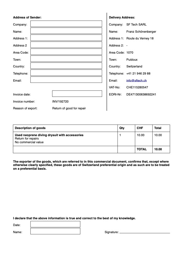repair form & customs documents