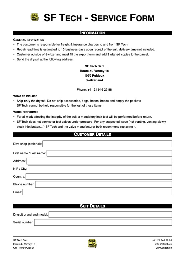 Drysuit measure form (en)